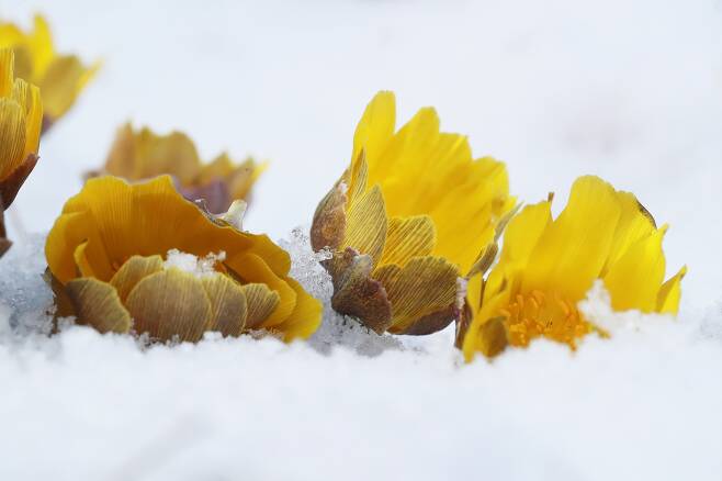 2) 올해 입춘(立春)을 맞아 눈속에 핀 복수초 꽃..