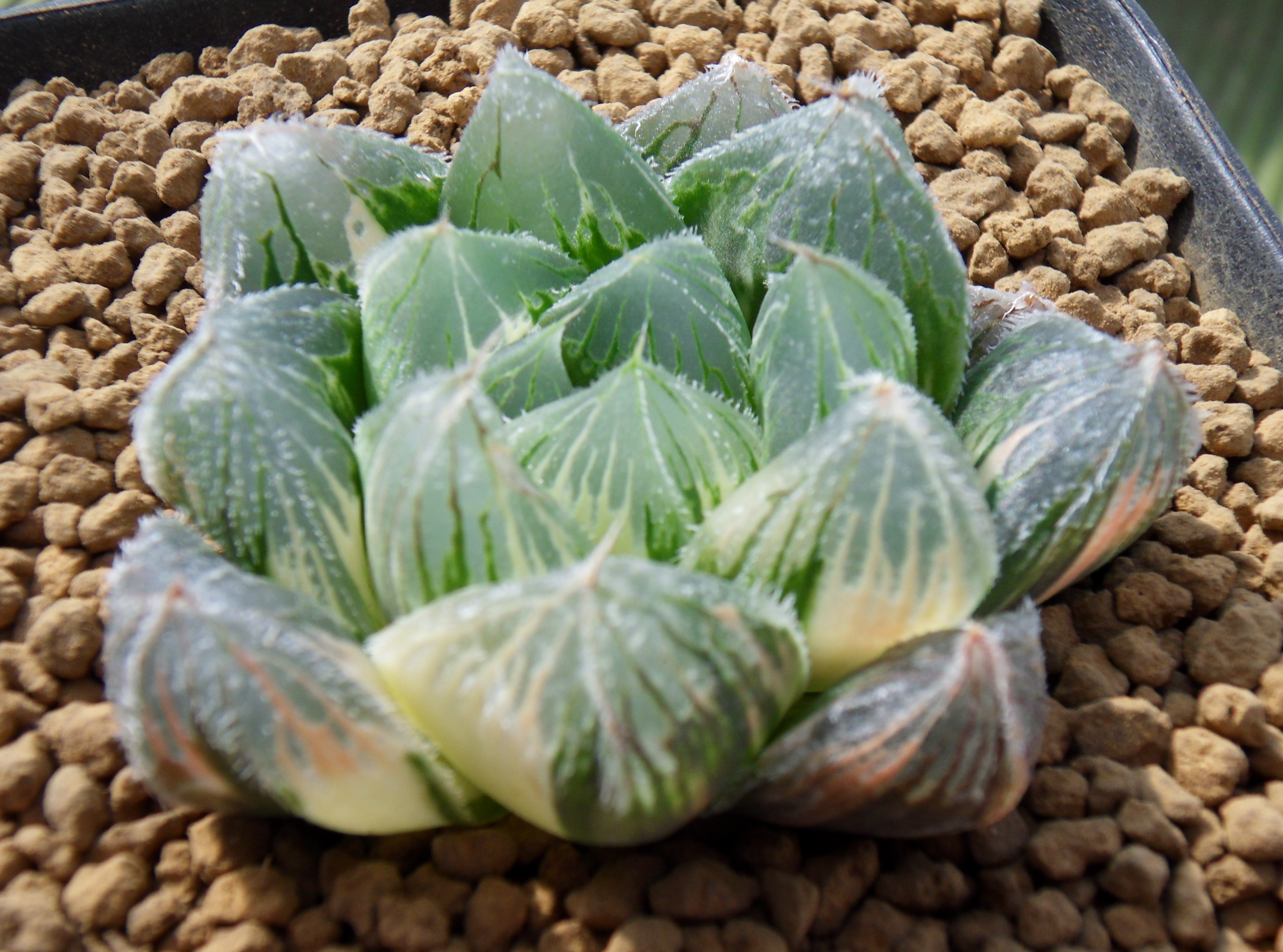 1) 하월시아 베누스타 금(錦) 교배종 아이.. 자구를 큰 아이로 하나 분리해서 따로 심어주었다.